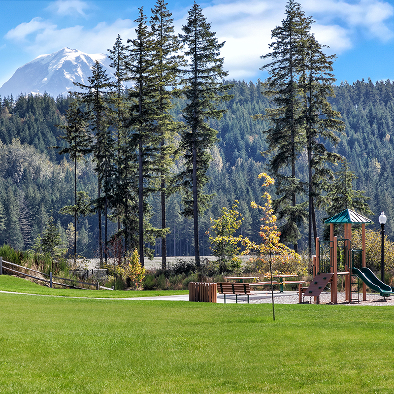 - Stunning views of Mount Rainier throughout community